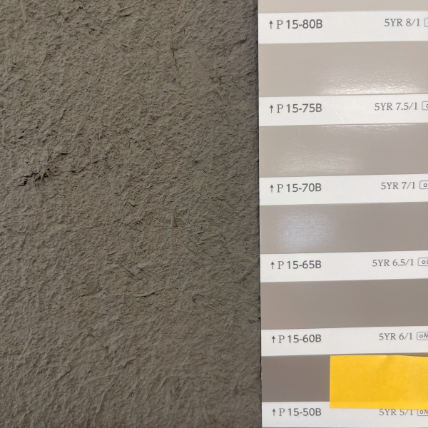 内装制限も必要な事もあり、弊社がご提案させていただいたのは弊社製品の土壁仕上げ材の中に不燃材認定を取得している製品があるので、それをベースに混ぜたい「土」を素材に使用し、調色してご希望のカラーにするのはどうでしょう?とご提案させていただきました。