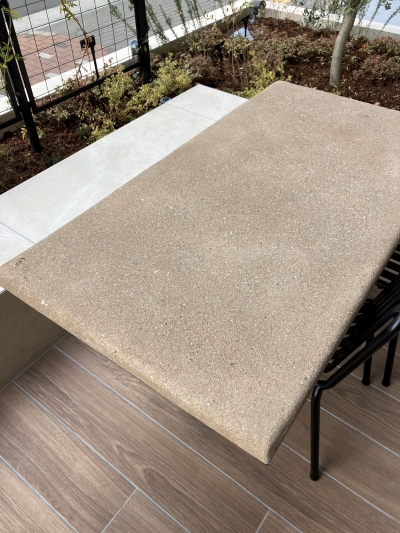 発想も非常にユニークな方で、テーブルの天板にもこの土間材を採用していただいた事もあります。