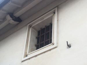 土蔵補修現場で見かけた昔の仕事!高いところなので近くで見れませんでしたが、よく見ると細かい。ちょっとしたことなので見過ごしますが、施工された左官屋さんはこのこだわりを大切にしているんでしょうね。すばらしい。 角に小さく模様を刻んでいます。ちょっと画像が悪くてすいません。