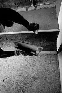 「ブログに載せるなら、かっこよく撮ってね!」の左官屋さんの要望から左官道具と塗っているところをかっこよく撮って見た!白黒で撮るとかっこよく見えますねぇ~見えるでなく本当にかっこいいですよ!いかがですか。