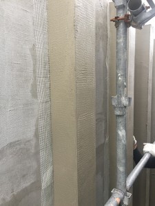 この建物の下地は、先ほどのセメントボードではなく、最近多くなってきました通気工法のラスモルタル下地です。