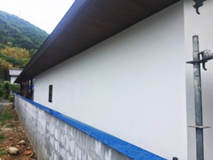 その上から漆喰仕上げで、最後に島かべ撥水材をご利用頂いております。