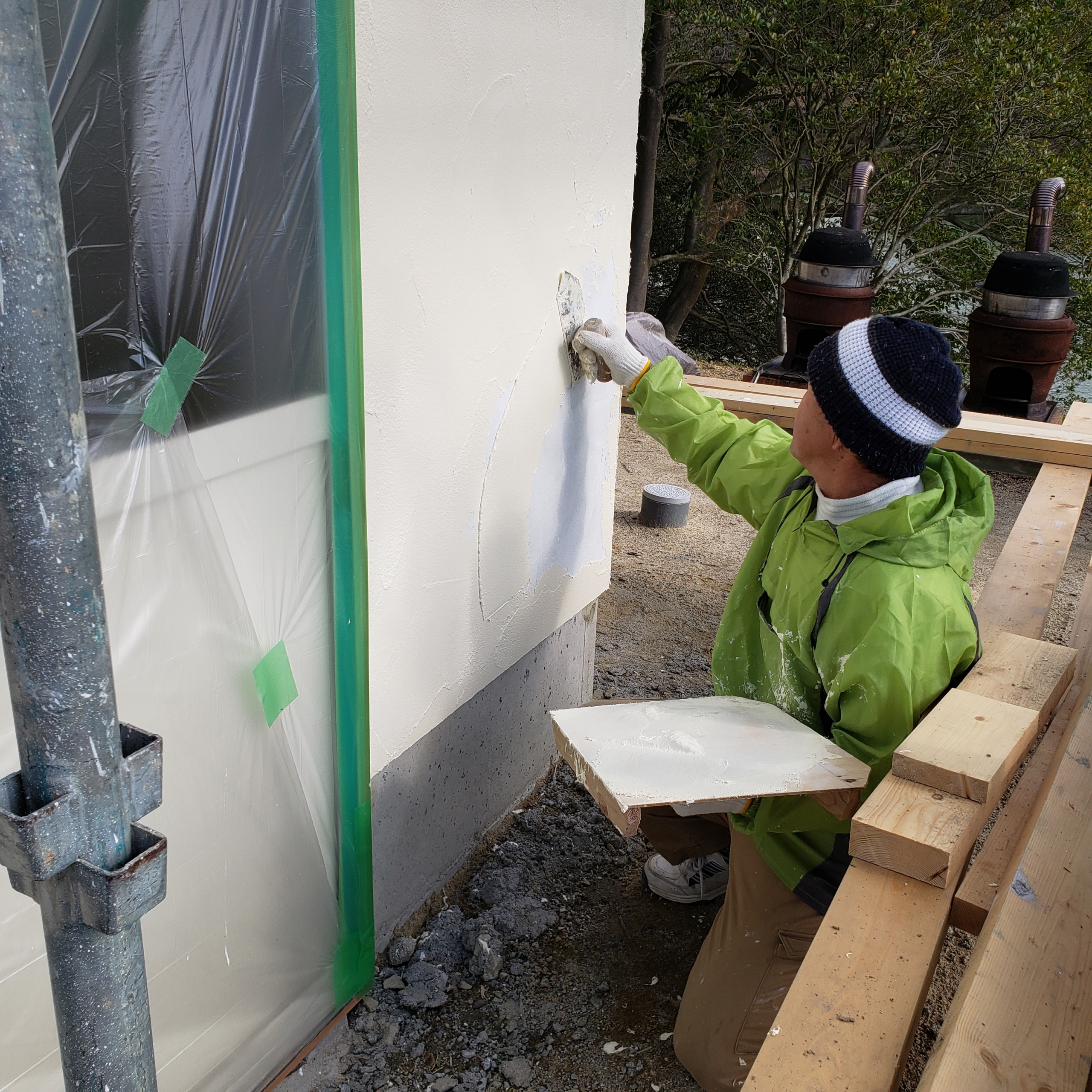 下地材乾燥後、上塗り材を鏝塗りします。