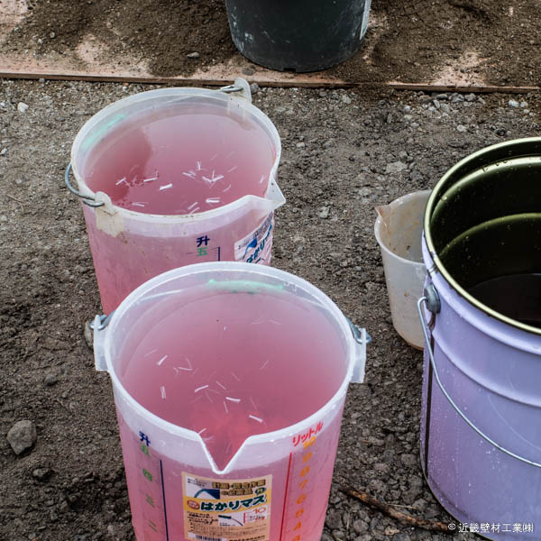 もともとは、真砂土舗装、土系舗装に使われている真砂コン液ですが、その特長(強度・色・エコ)を活かすことで版築土塀への転用が実現しました。