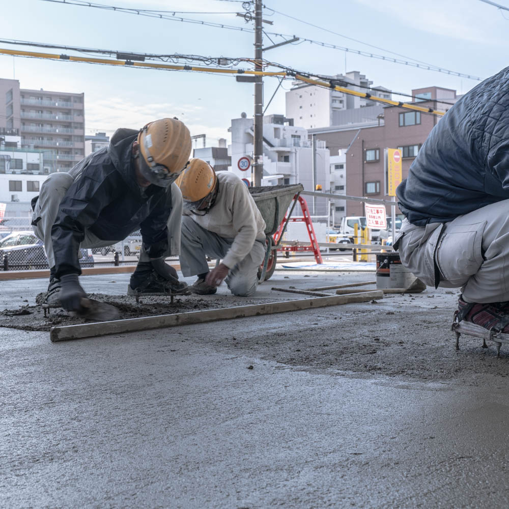 【土間鏝押さえで勾配を取って平滑に】