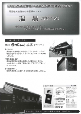 いつもお世話になっております。 お客様に耳寄りな情報〜城かべ瑞黒〜今までの黒漆喰とは違います! ●黒くしたい● 色ぬらを少なくしとにかく黒くなることを実現しました。 ●作業を楽にしたい● ノロを伏せこむ感覚で鏝波を消して頂くだけで美しくしあがります。 ●早く仕上げたい● 従来の黒漆喰とは違い、多くの工程を必要としません。 今までの黒漆喰とは少し違う!城かべ瑞黒をお勧めします。 興味のある方は、ご連絡下さい。サンプル・カタログ等お送りいたします(^^♪