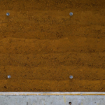 主に土塀に使われる版築塀、日本の伝統的な工法で、木枠で型枠を作りその中に土を入れて固め成形する土塀である。