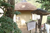 塵穴(ちりあな)とは・・・茶室の周辺に作る青竹などで作った箸を入れたり、路地内で咲いている花などを入れ客人への心配りを行う丸や四角の穴。
