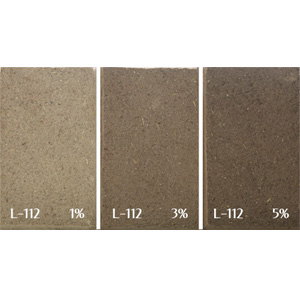 カラーサンプルは、左記の写真を各クリックして頂きますと、漆喰の搔き落とし(白)に各重量比1%・3%・5%配合したカラーサンプルを見ていただくことが出来ます。